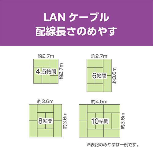 対応規格:カテゴリー6A(10GBASE-T),カテゴリー6(1000BASE-TX),カテゴリー5e(1000BASE-T),カテゴリー5(100BASE-TX),カテゴリー3(10BASE-T)