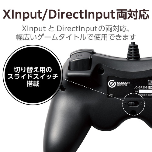●背面にXInputとDirectInputを簡単に切り替えられるスライドスイッチを搭載しています。