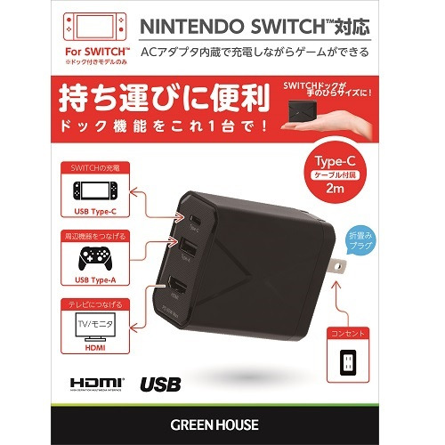 ●Nintendo Switch対応、ACアダプタ内蔵で充電しながらゲームができる