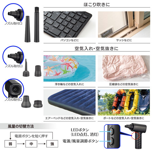 ●ほこり吹き、空気入れ、空気抜きの1台3役