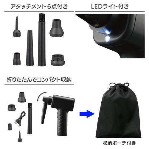 オーム電機 OA-MAD01-K 電動エアダスター 充電式 ブラック