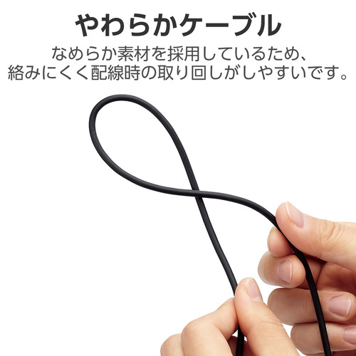 ●配線時に取り回しがしやすく、束ねてもクセが残りにくい、やわらかケーブルを採用しています。