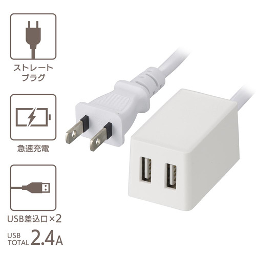 ●USB充電ポート×2ポート搭載、合計出力2.4A