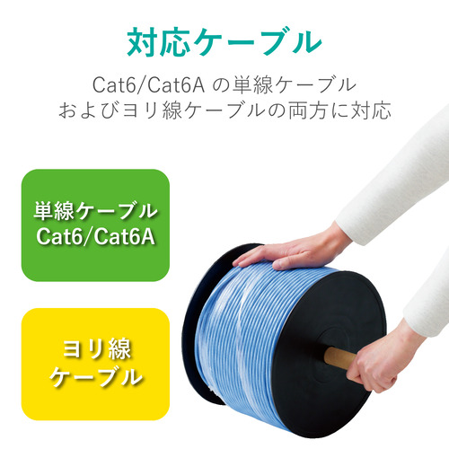 ●Cat6/Cat6Aの単線ケーブルおよびヨリ線ケーブルの両方に対応しています。