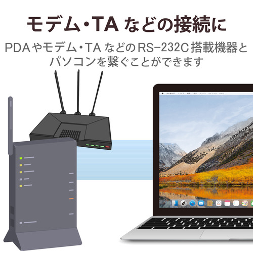 接続対応機器:USB-Aポート搭載のWindowsパソコンおよび、RS-232C(D-Sub9pin)ポート搭載のデバイス(モデム、TA、PDAなど)