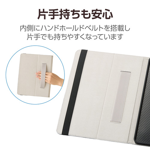 ●片手で持って操作しやすい、ハンドホールドベルトがフラップ内側に付いています。