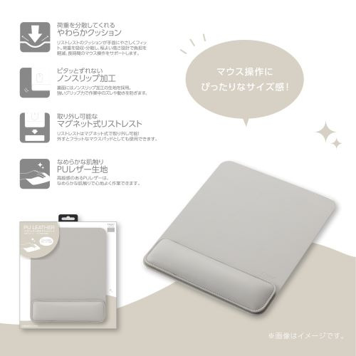 ナカバヤシ MUP-936GY リストレスト付きPUレザー マウスパッド グレー