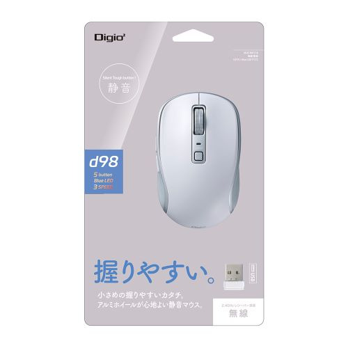 付属品:取扱説明書、単3アルカリ乾電池1本(お試し用)、小型マイクロレシーバー(マウス本体に収納可能W18×D15×H5mm/約2g)