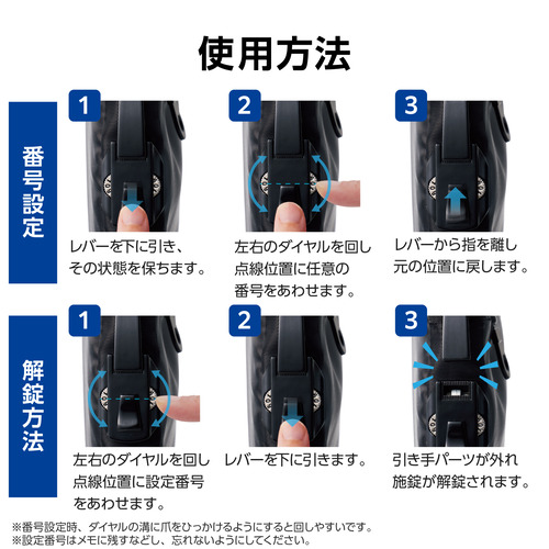 ●収納物を盗難から守る、ダイヤルロック機能付き。キー不要なので、キーを紛失する心配がありません。