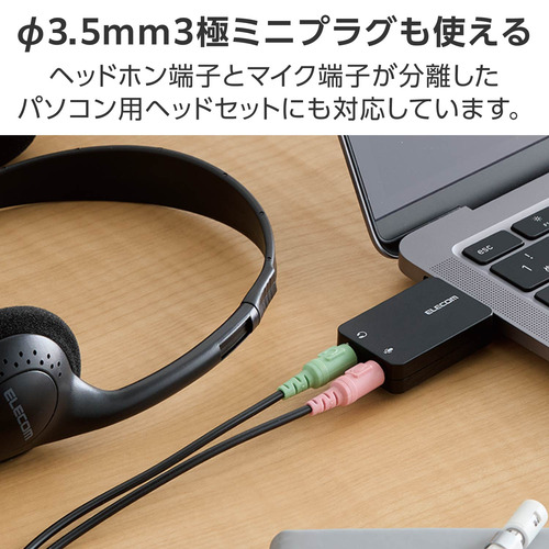 ●イヤホンジャックのないノートパソコンやタブレット、ゲーム機でも、ヘッドセット・イヤホン・スピーカー・マイクなどを使えます。