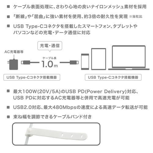 コネクタ形状:USB Type-C - USB Type-C(充電・通信用)