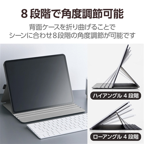 ●ドローイングや動画視聴などのシーンに合わせた8段階の角度調整が可能!薄さにこだわったスリムな13インチiPad Pro(M4)用フラップケースです。