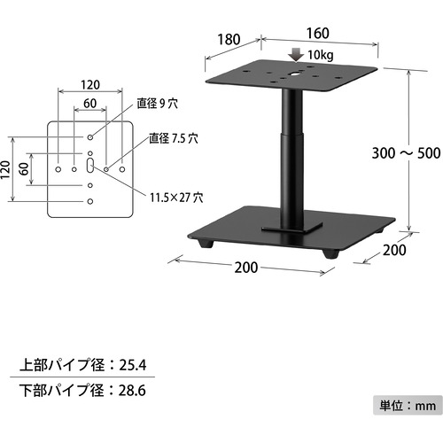 外形寸法:幅 200 × 奥行き 200 × 高さ 150〜200 (mm)