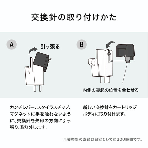 AT-SB727|AT-SB2022|AT-LP60X|AT-LP60XBT|AT-PL300|AT-PL300USB|AT-PL300USBII|AT-PL300BT・針交換時間の目安:約300‾500時間となります。