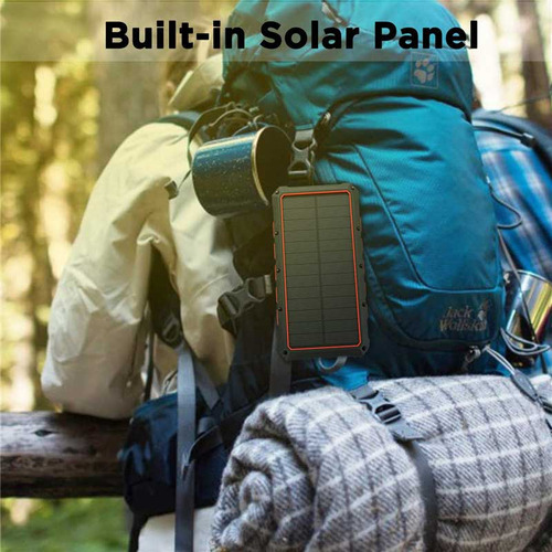 バッテリー大容量30000mAh表面に搭載されたソーラーパネルへ太陽光を当てることで本体に蓄電することが出来ます。