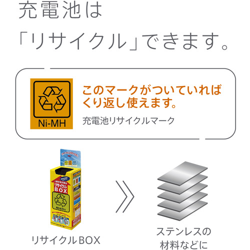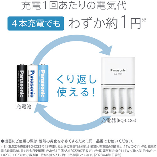 ●電池容量アップ(※従来品BK-4MCCと比べて※)でさらに長もち。容量:min.800mAh(※JIS C8708 2019(7.3.2)の充放電条件に基づく電池の最小(min.)容量※)