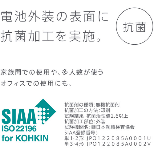 ●電池容量アップ(※従来品BK-2MGCと比べて※)でさらに長もち。容量min.3200 mAh(※JIS C8708 2019(7.3.2)の充放電条件に基づく電池の最小(min.)容量※)