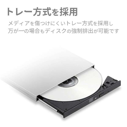 ●ディスクの出し入れは、トレー方式を採用することで、ディスク表面とドライブ入口が物理的に擦れることなく、ディスクを出し入れすることが出来るため、大切なメディアにキズを付ける事なく使用する事ができます。