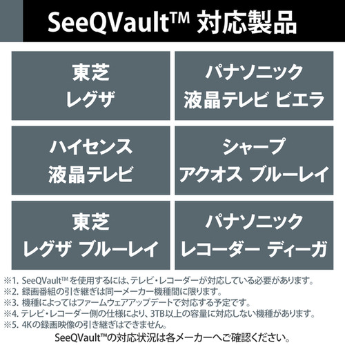●テレビの買い換え時などに録画番組を引き継げる「SeeQVault規格」に対応した外付けハードディスクです。