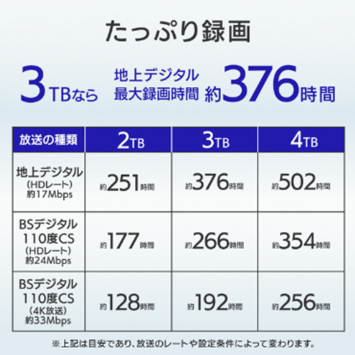 ●東芝「レグザ」・パナソニック「ビエラ」で録画!”全録”や”24時間録画”にも対応した高信頼HDD