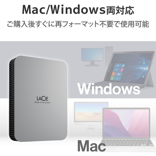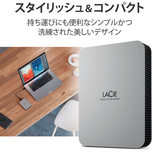 エレコム STLP4000400 LaCie 外付けHDD 4TB ポータブル Mobile Drive ムーン・シルバー