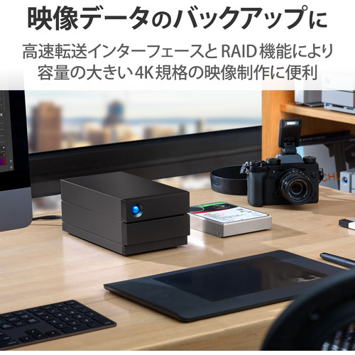 ●RAID 0/1に対応した、LaCieの2big RAIDシリーズ。USB3.2(Gen2)インターフェース搭載で映像データのバックアップに最適です。
