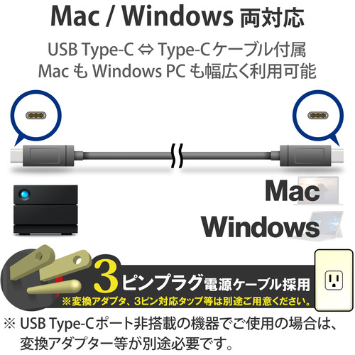●USB3.2(Gen2)ポートを装備し、MacとWindowsの両方のユーザーにご利用いただけます。