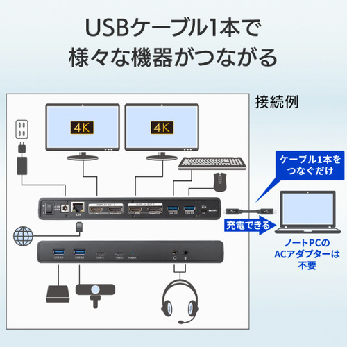 ●USBケーブル1本で、パソコンも充電できる!高解像度ディスプレイや様々な周辺機器がつながるドッキングステーション