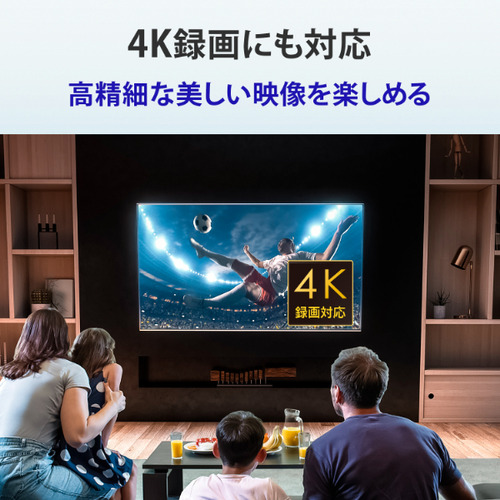 新4K衛星放送の録画に対応しています。4K放送では録画に多くの容量が必要なため、大容量のハードディスクをおすすめします。4Kテレビやレコーダーにつないで、高精細な美しい映像を、いつでもお楽しみいただけます。
