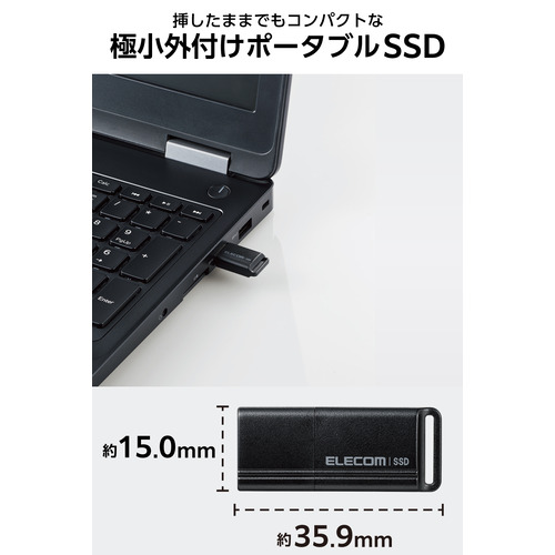 ●極小サイズでパソコン、テレビ、ゲーム機などに挿したままでもコンパクト。キャップでUSBコネクターへのゴミやホコリなどをブロックできるUSB 10Gbps(USB3.2(Gen2))外付けポータブルSSDです。極小USBメモリサイズで読み込み最大600MB/sの高速データ転送を実現します。