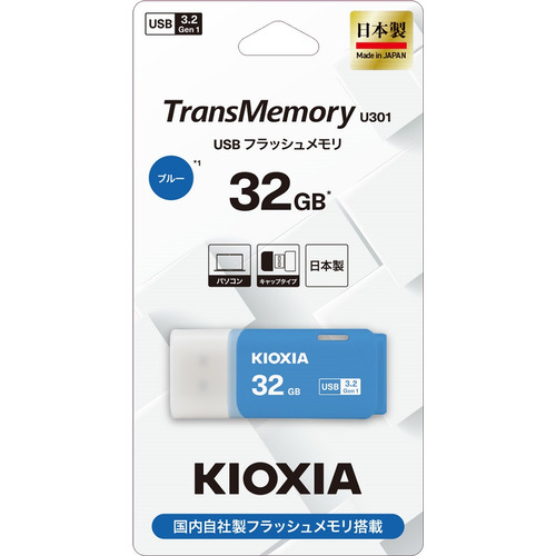 【推奨品】KIOXIA KUC-3A032GML USBメモリ TransMemory U301 32GB USB Type-Aコネクタ Win/Mac対応 キャップ式 ブルー
