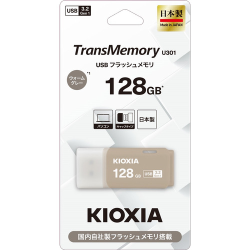 KIOXIA KUC-3A128GH USBメモリ TransMemory U301 128GB Type-Aコネクタ Win/Mac対応 キャップ式 ウォームグレー