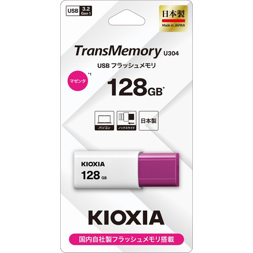 KIOXIA KUN-3A128GR USBメモリ Windows/Mac対応 TransMemory U304 128GB マゼンタ