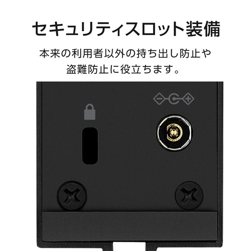 ●本体背面にセキュリティスロットを装備していますので、本来の利用者以外の持ち出し防止や盗難防止に役立ちます。