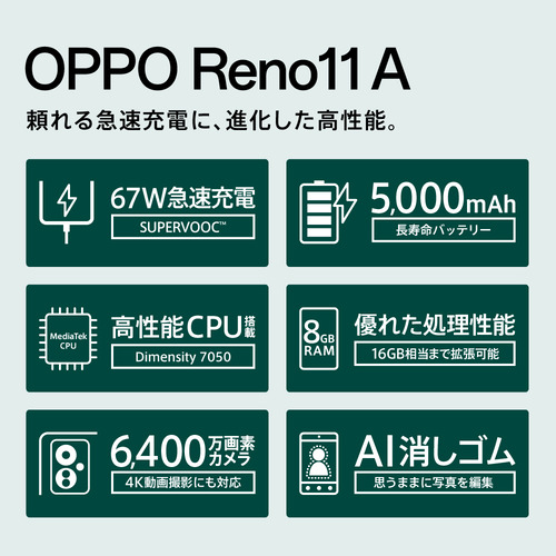 OPPO CPH2603 GR OPPO Reno11 A SIMフリースマートフォン ダークグリーン