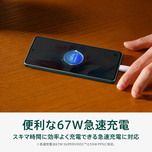 67 W SUPERVOOCと55 W PPS急速充電に対応。4年後も80%以上*1の最大容量を維持する大容量&長寿命バッテリーです。