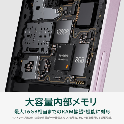 最大16GB相当までのRAM拡張*3機能に対応。さらにストレージは余裕の128GBに最大2TBまでのmicroSDカード対応です。