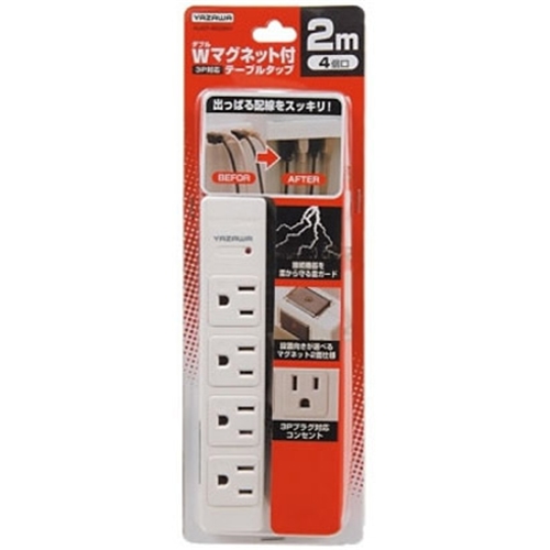 ヤザワ Y02JKP402WH 3Pマグネットタップ 4個口 2m 白