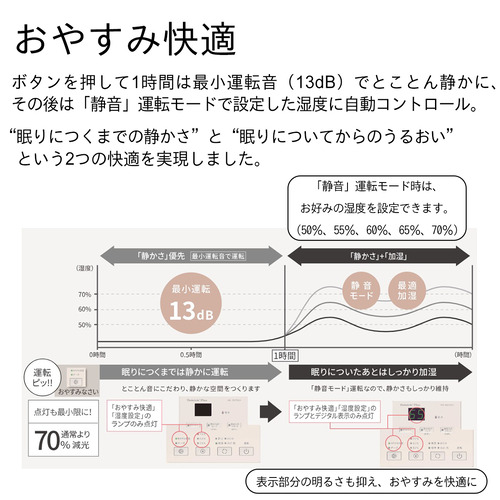 「眠りにつくまでの静かさ」と「眠りについてからのうるおい」という2つの快適を実現