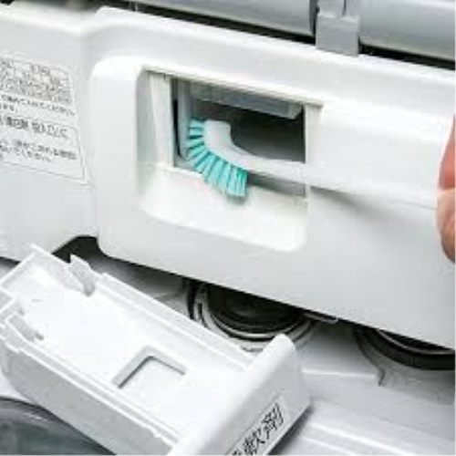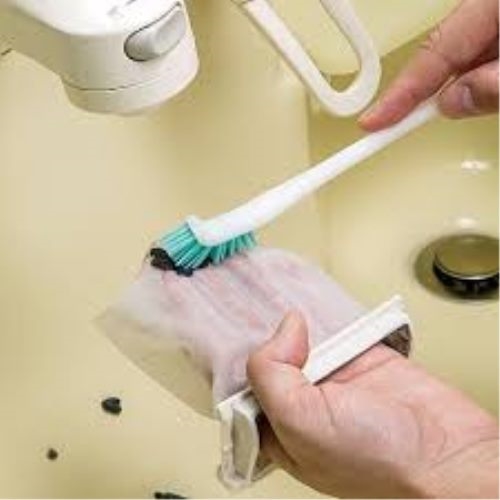 ●洗濯機のくず取りネットや洗剤投入口などの細かい場所に。スリムなL型ブラシなので、狭い隅や角の汚れをしっかり落とします。