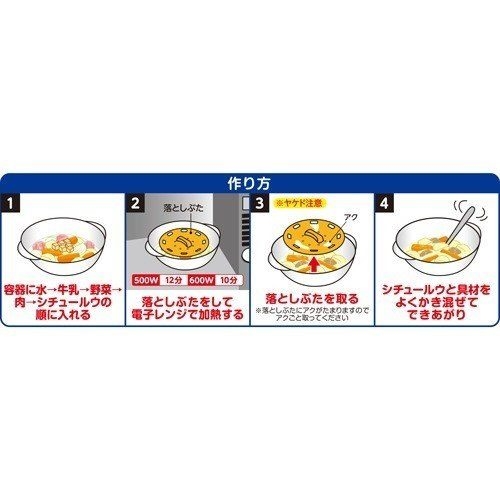 ●材料を全部入れて加熱するだけで、クリームシチュー1皿分が簡単に作れるレンジ調理容器。