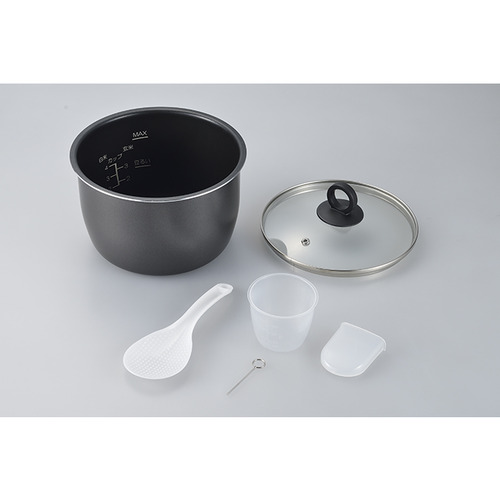 付属品:ガラスふた・しゃもじ・計量カップ・水滴受け・お掃除ピン・レシピブック