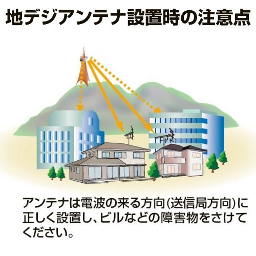 ※電界の強さにあったアンテナをご使用下さい(例:微弱電界地域で強電界用のアンテナを使用しても受信できません)