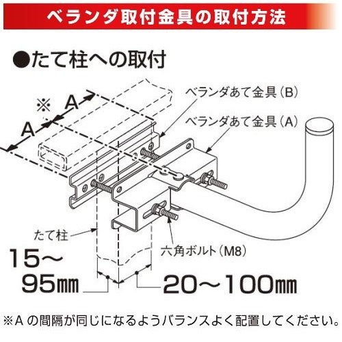 付属品ベランダ取付金具 1セット、同軸ケーブル(15m) 1巻、スパナ(M6、M8) 1個、結束バンド(200mm)1本