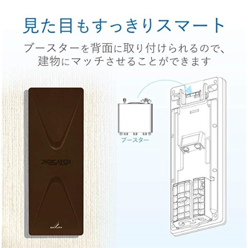 平面アンテナの背面にブースターが取付けできる新構造により、スッキリきれいな設置が可能。