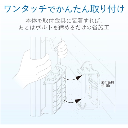 本体を取付金具に装着すれば、あとはボルトを締めるだけの省施工。