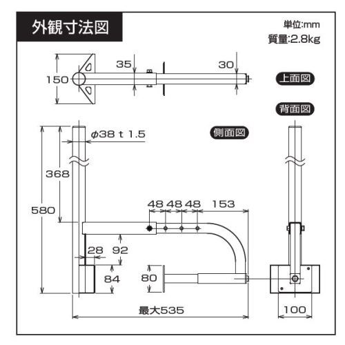 ベランダ等のコンクリート手すりに50cm以下のBSアンテナや薄型アンテナ等を取り付けるときに使用します