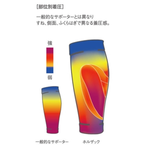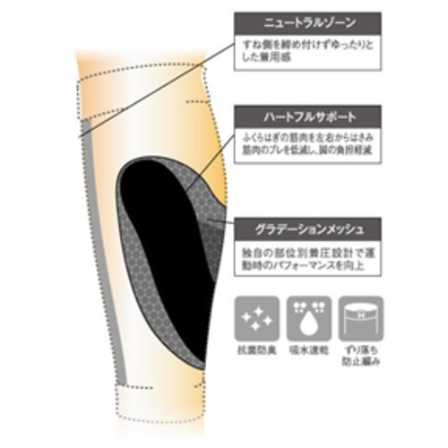 新発想の部位別着圧設計がすね側とふくらはぎ側で異なる着圧値を実現しました。