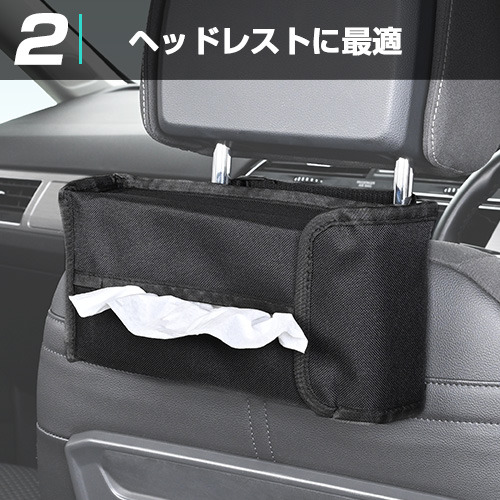 ●車内で置き場所に困るティシュボックスを収納してご使用可能