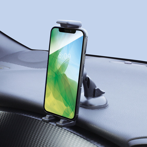 ●見やすい位置に上下(約90mm)スライド可能なカーボン調のスマートフォンホルダーです。